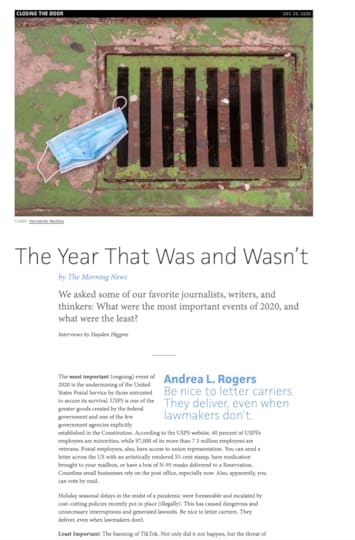 I have a piece in The Morning News. It was good to reflect on the last year. Here’s a link: https://themorningnews.org/article/2020-the-year-that-was-and-wasnt