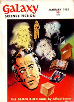 He continued writing science-fiction stories for American “pulp magazines” throughout the 1940s, including Astounding Science Fiction, Astonishing Stories, and Unknown Worlds. His first published novel, however, had nothing to do with science fiction. Who He? was a satirical exposé of America’s television industry, told from the perspective of an alcoholic gameshow writer. The novel was originally published by Dial Press in 1953 and renamed The Rat Race for its paperback release by Berkley Books in 1955. The Demolished Man