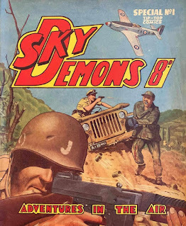 I was proud of “The Air Strip” title, which I thought was a rather clever play on words with air landing strip/comic strip. But Bill and his sales chief wanted something more flamboyant and outranked me. And so it was that “Sky Demons” was added to Southdown Press library under their ‘Tip Top Comics’ banner.