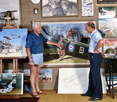Above: Norman Clifford (left) in his studio, 1988In 1995, he was commissioned by Australia Post to paint a series of Australian military aviation stamps.