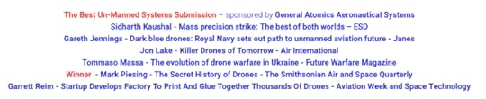 Thank you to all the judges who voted for my feature article for The Smithsonian’s Air and Space Quarterly on The Secret History of Drones, and the editorial team and the fantastic curators who made it possible.