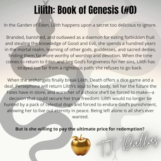 Lilith: Book of Genesis, book 1 in the Lilith Prequel Series, is a dark novella. Please refer to CW here. *IMPORTANT* This novella can be skipped if you don’t want to read the darker elements.