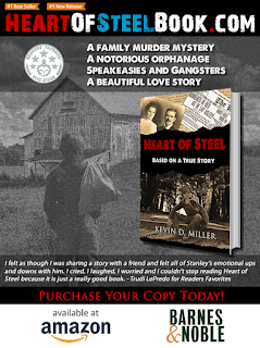 Heart of Steel is the true story of Stanley Miller and it is hard to find a more realistic tale that will touch you deeply. Kevin D. Miller has written of abuse, murder, prohibition, life on the farm, pain, suffering and joy with so much heart and feeling. I felt as though I was sharing a story with a friend and felt all of Stanley’s emotional ups and downs with him. I cried, I laughed, I worried and I couldn’t stop reading Heart of Steel because it is just a really good book. Heart of Steel covers so many genres and is good reading for the young, the old, male and female – just about everyone should read this book.