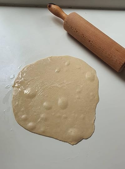 You start by flattening the dough into a thin disc with a rolling pin or the heel of your palm, then stretch it further by rotating it in the air—leading with one hand while the other acts as a fulcrum. This motion is often called “flipping,” but I find the term confuses students in my cooking classes, as they assume the dough must be literally flipped onto its other side. While this is certainly possible with practice, it requires time to perfect. Fortunately, there’s an alternative method: gently stretching the dough out, much like you would with strudel dough.
