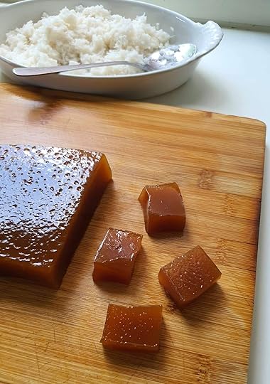 Interestingly, kueh kosui has a cousin in Southeast Asia: kutsinta (also spelled cuchinta or kuchinta), a similarly soft and chewy steamed sweet treat from the Filipino kakanin tradition. Made with unrefined sugar and alkaline water, then topped with grated coconut, its resemblance to kueh kosui hints at a shared regional history shaped by migration and cultural exchange.