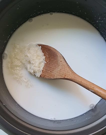 Normally, when you cook rice, water molecules penetrate the starch granules and heat makes them swell, creating that fluffy, tender texture. But coconut milk—an emulsion of tiny droplets of coconut oil suspended in water, along with proteins and sugars—introduces fat into the mix. These fat droplets coat the surface of the rice grains, creating a thin, waterproof-like layer that slows down how quickly water can penetrate the rice during cooking, resulting in semi-cooked or unevenly cooked rice.