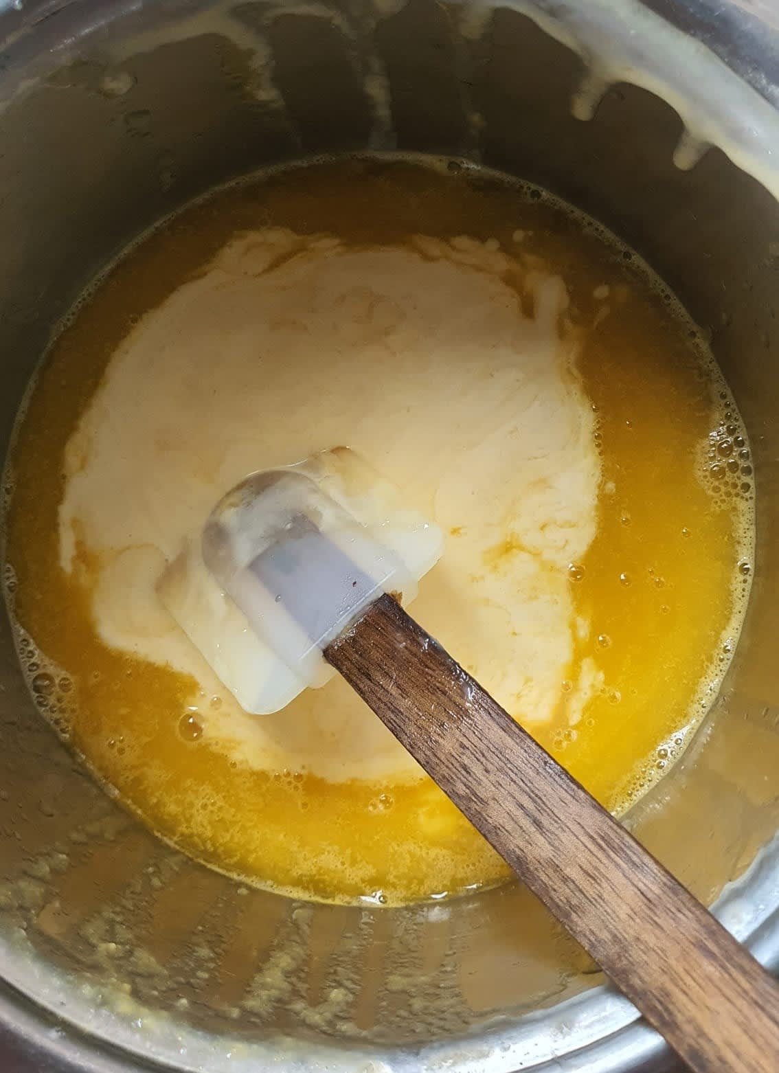 It felt like I was finally getting closer to the right texture, but I was still facing issues. When steamed as-is, the batter tended to separate. But when I pre-cooked it, it often ended up over-thickened, making it difficult to level evenly in the moulds: