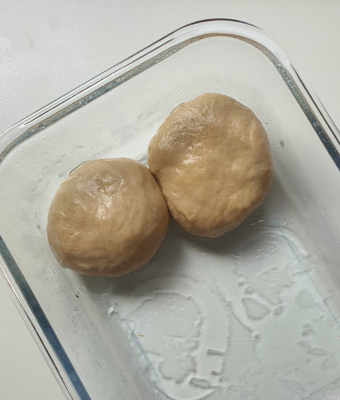 The idea with roti prata dough is that it needs to be strong and elastic enough to stretch out thinly without tearing—in bread-making terms, the stretched dough should form a giant “windowpane.” While some cooks use a stand mixer to develop this strength and elasticity, time can be just as effective, without the need for elbow grease or machinery. In fact, one of my favourite brioche recipes is a no-knead one from Weekend Bakery, where a 24- to 48-hour rest in the refrigerator compensates for the intensive kneading. The same principle applies to roti prata—the key to a strong, stretchable dough is rest. Your job is simply to mix all the ingredients in a bowl, divide the dough into portions, coat them in oil, and then let them rest overnight.