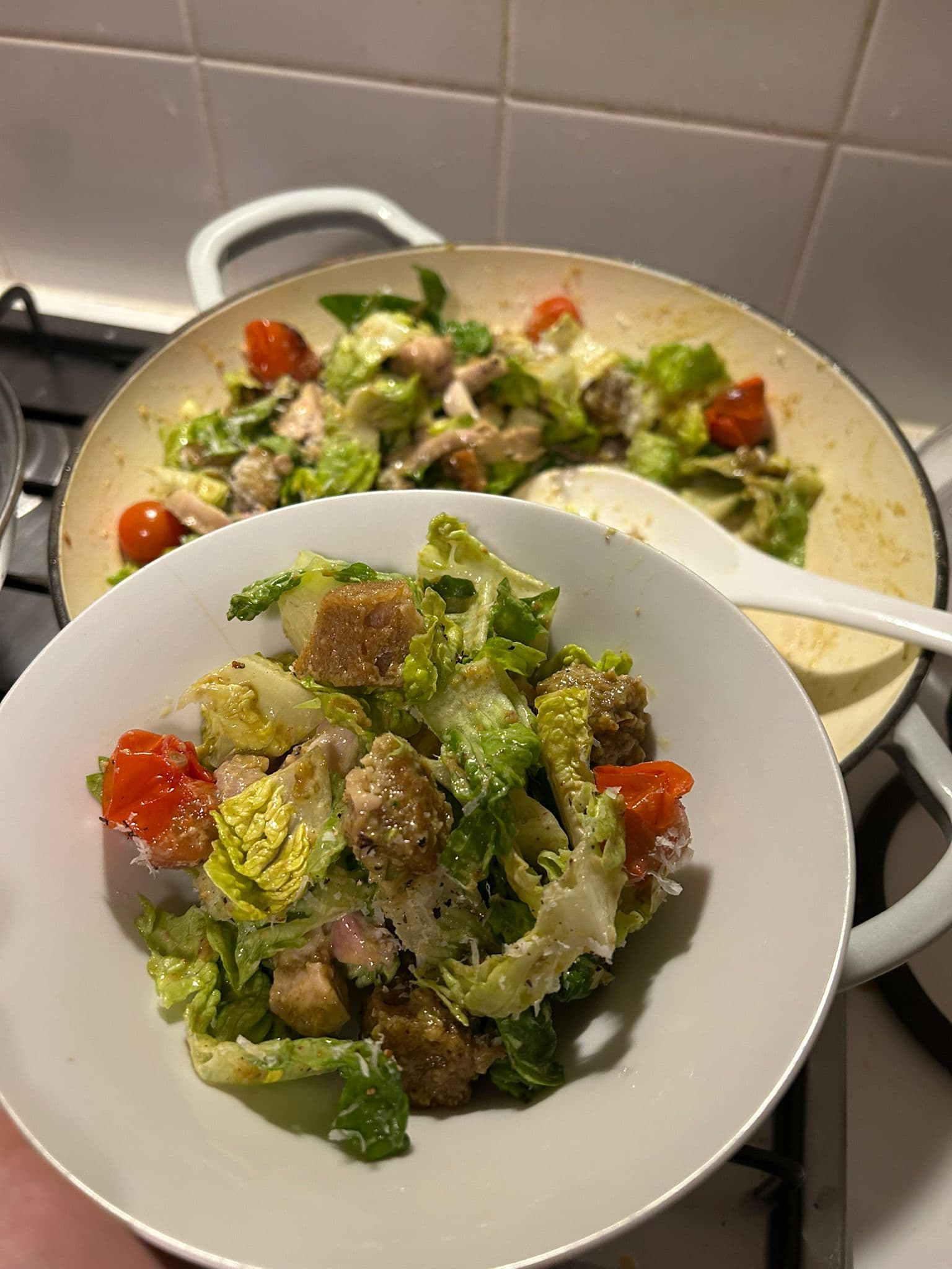 Inspired, I made a pistachio & chicken caesar salad over the weekend and it was such a hit with us that I thought I’d share it with you! The convenient thing about a chicken caesar is that it’s a full meal on its own, the salad equivalent of a one-pot dish. This one is reminiscent of the famous roast chicken salad by Zuni Cafe, where the croutons are tossed with the chicken roasting juices, though if you want to make this salad a meatless one you can — the combination of pistachio and anchovy is definitely memorable enough.