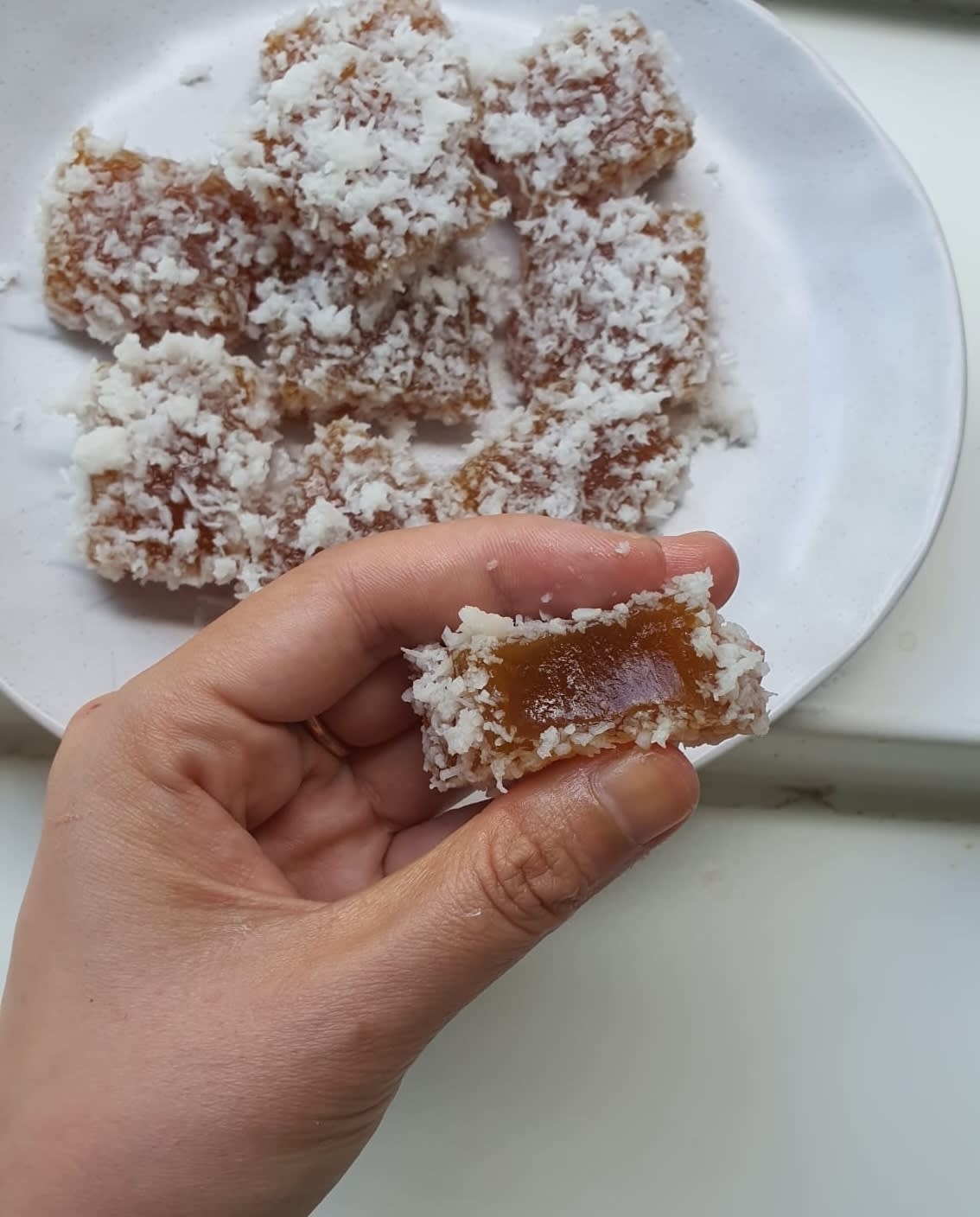 I was thrilled when I sliced into the kueh kosui. It had everything I’d been chasing: a glossy surface that caught the light, a gentle wobble as the knife went through, and a tender, springy bite. There was no harsh, alkaline edge, only the rich flavour of palm sugar.