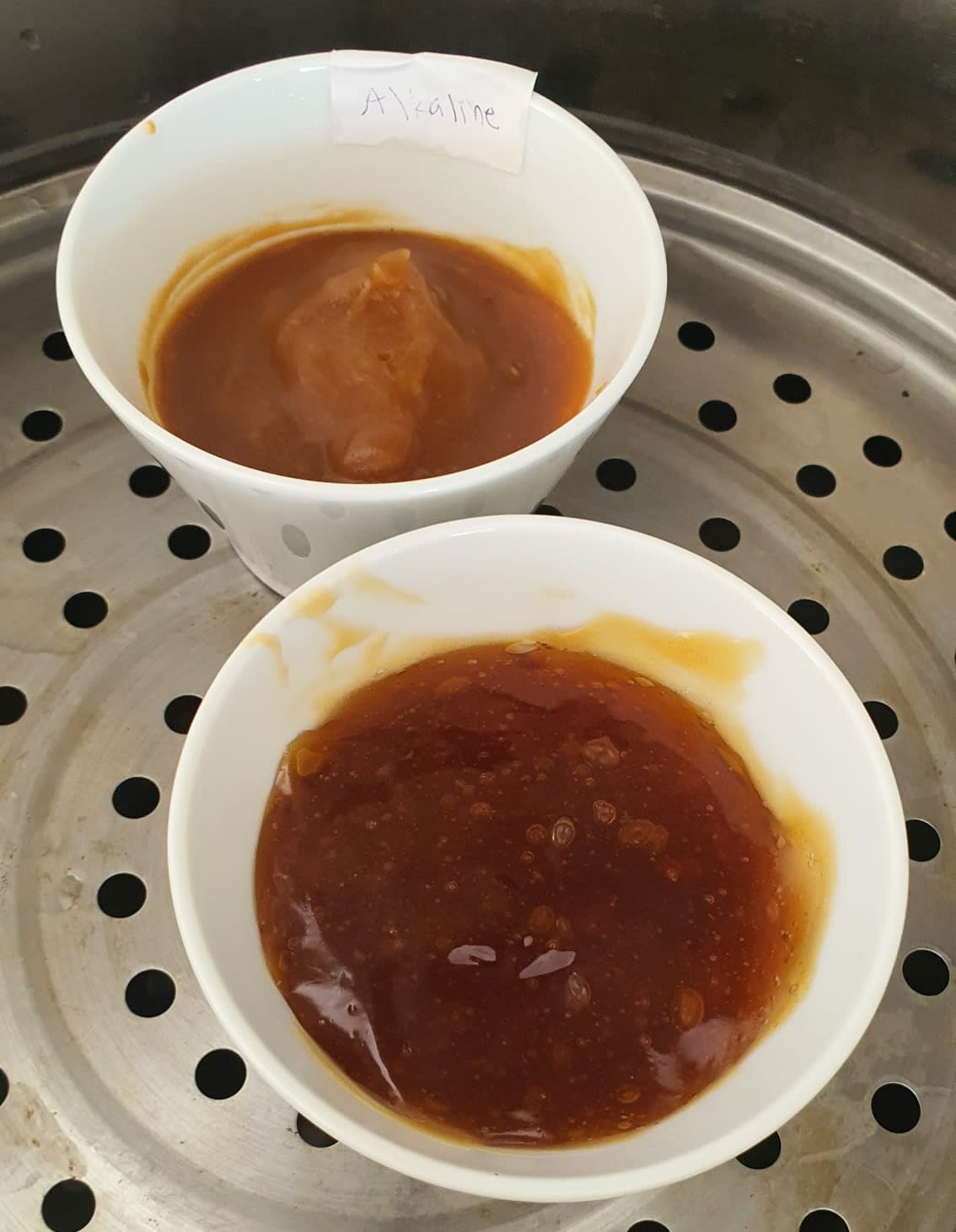 Suspecting the rice flour ratio was too high and the alkaline water too low, I experimented with a few different ratios based on recipes online. Still, the results were disappointing—either too opaque and lacked bounce, or overwhelmed by the alkaline flavour.