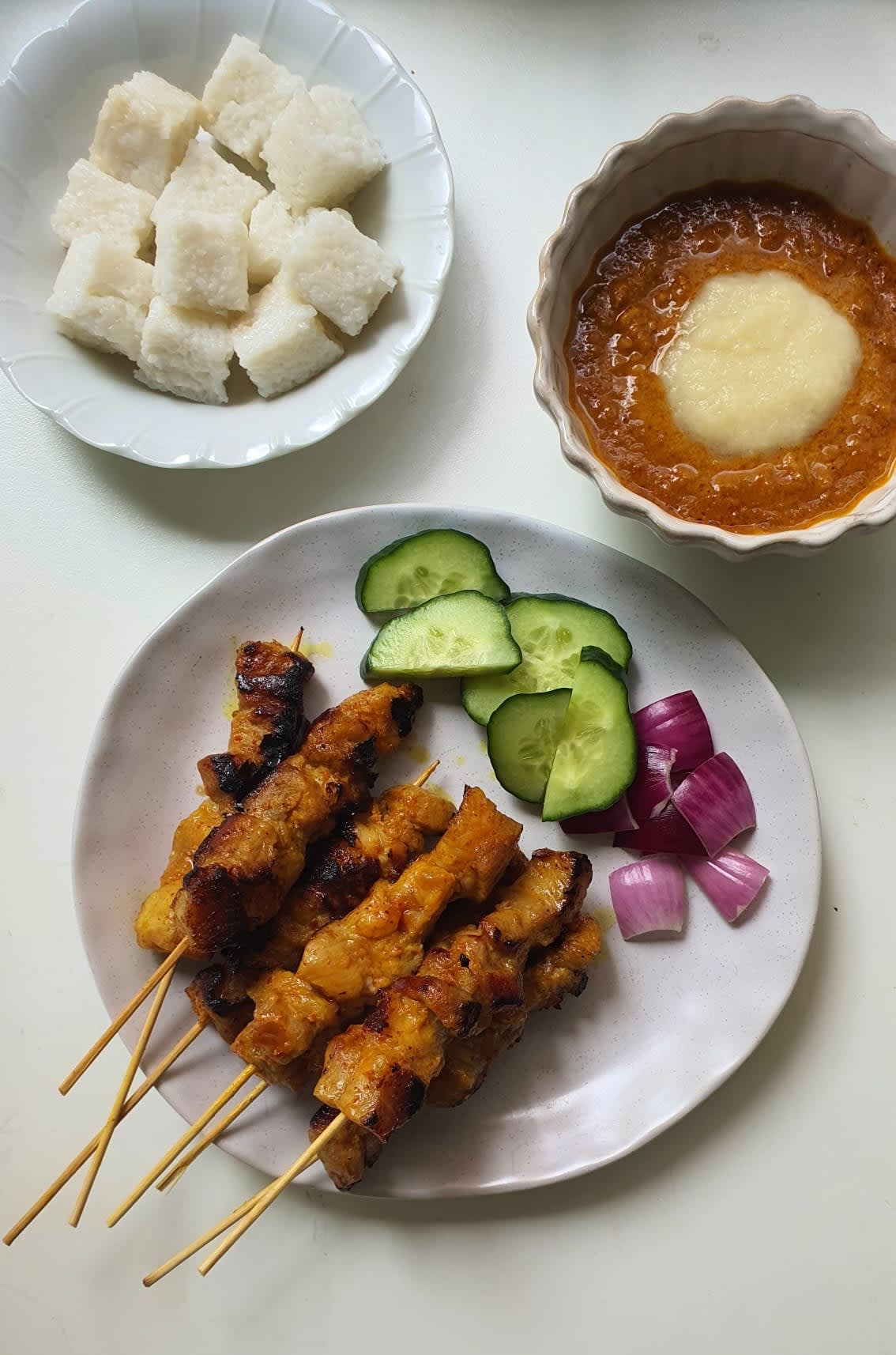 When I think of summer, barbecue and satay inevitably come to mind. As a Singaporean, satay is very close to my heart and when I moved to the Netherlands, I realised that it’s also a big part of the culture here, owing to the Indonesian presence. Even though satay is traditionally grilled over charcoal, I don’t always enjoy the fuss of having to start a fire outdoors. If, like me, you want to scratch your satay itch without charcoal, you can fry them in oil in a pan, as I did.