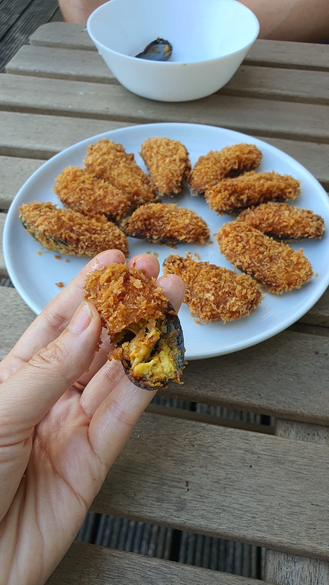 Mussel otah, steamed and enjoyed as a savoury spread for bread.After two years of living in the Netherlands, one snack I’ve come to enjoy—almost monthly—is bitterballen, the deep-fried bar staple found on nearly every menu. I’m a part of a walking group that meets every week to walk around our city’s canal and we inevitably end up at the tea house of the park for a drink. Designed for eating with a beer in hand and good conversation on the side, these bite-sized croquettes are usually what we’d order to share.