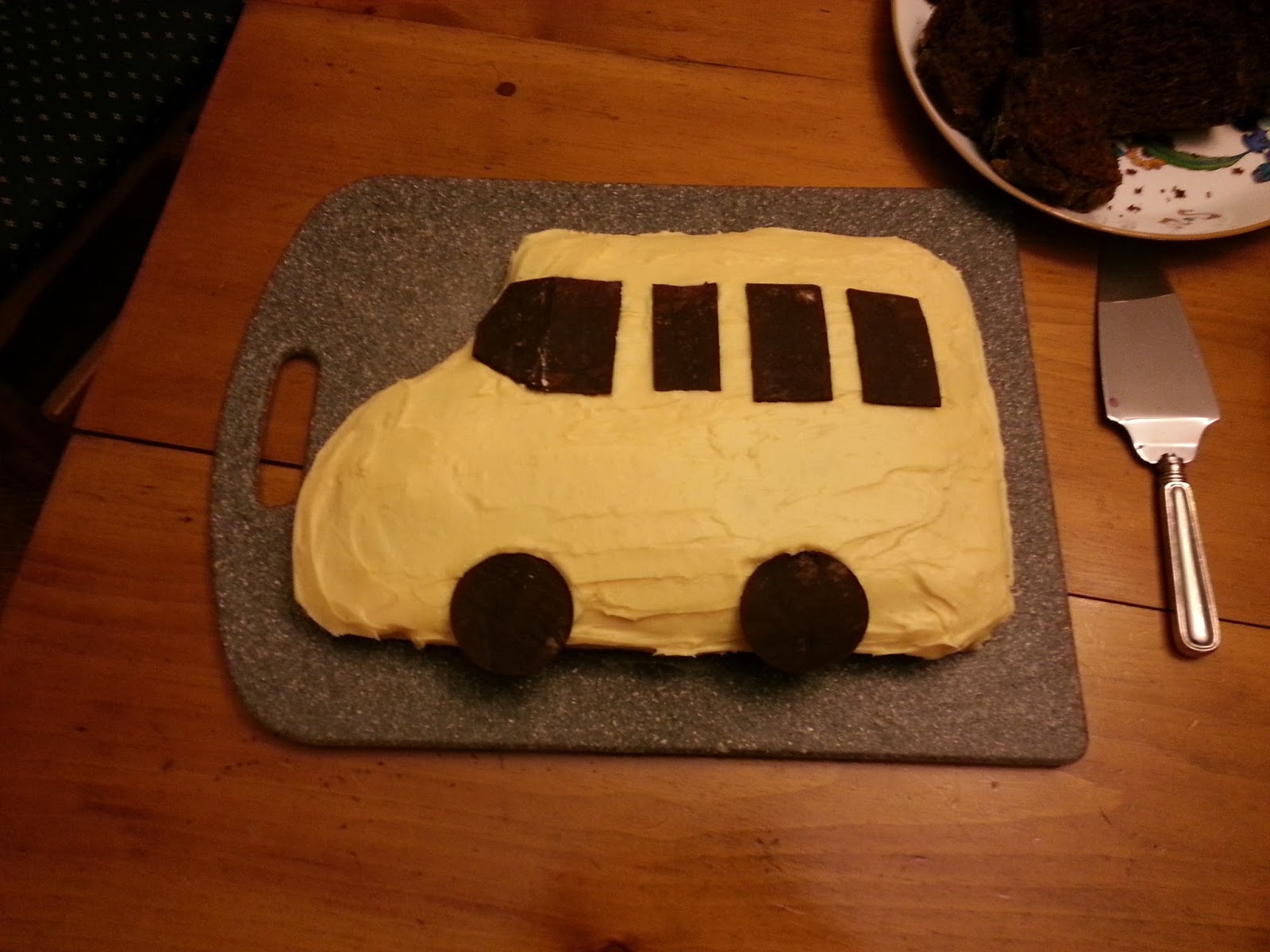 A school bus cake! Just like Sadhana and Beenabake for Quinn for one of his birthdays in Bone and Bread.