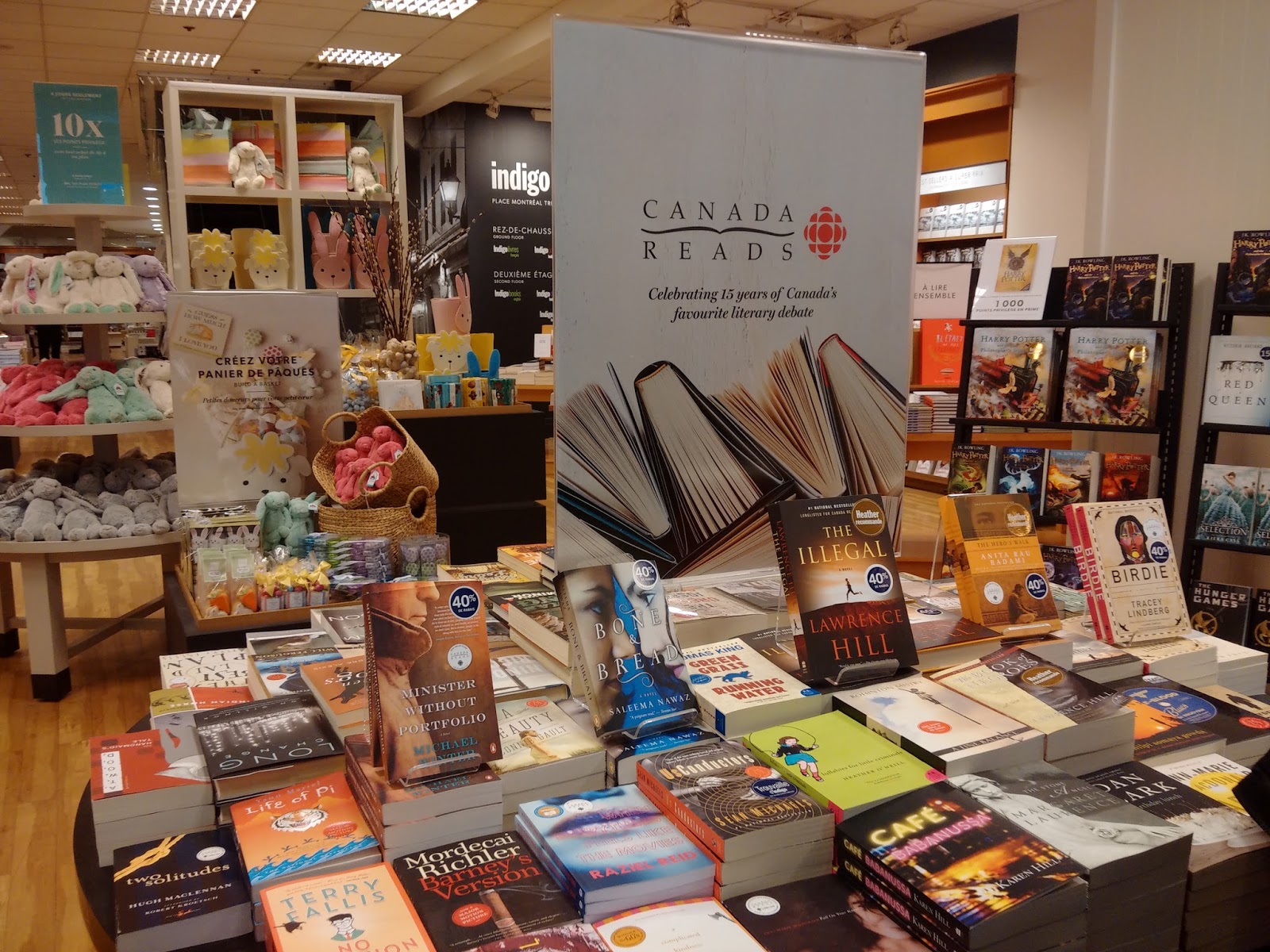 This week my friend K stopped by Montreal on her way to Ottawa with her mom and her very sweet one-month old baby. While we were killing time waiting for the restaurant to open, we stopped by Indigo to scope out the Canada Reads display and K took some photos.