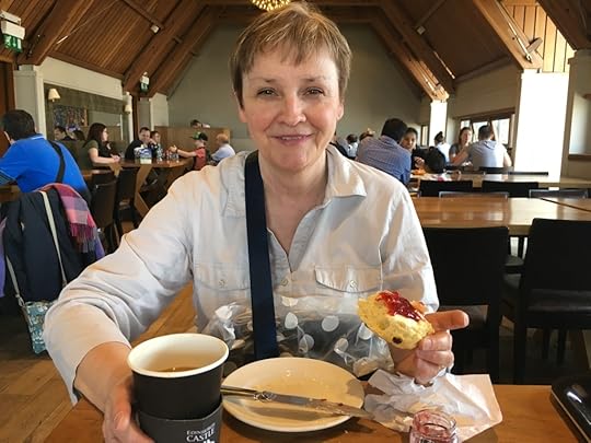 Enjoying a scone, Edinburgh Castle, April 2018Is your third book a continuation of this story line?