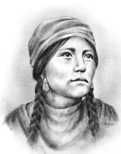 Charlotte Small, wife of explorer and cartologist, David Thompson also served as translator (Cree, French, English) and diplomat. At age 29 Thompson married this 13-year-old Metis Cree girl ‘in the manner of the country’. She was the product of a ‘country marriage’, in which her father abandoned her family to return to Scotland. Accompanying Thompson, Charlotte’s first child was born at age 15 and 12 others followed.