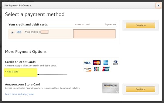 You can add or update your default payment method on Amazon.