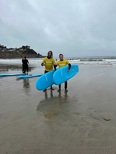 I give credit to our teachers. They were kind, patient, and so knowledgeable. In my first lesson, I think it took me longer to get in my wetsuit than I was in the water, but nonetheless, it was a lot of fun. As much as the San Francisco surf scene is not for the faint of heart, with its cold temperatures and foggy coastline, Ben and I ended up taking several of these beginner lessons together and, dare I say, got slightly better and better each time. We were incredibly sore, but I also appreciated the physical and mental challenge of surfing. By making it a more physical form of research, I was able to make connections so much easier in my head than I wouldn't have otherwise. Like the fact that the young girl in the book rides "goofy," otherwise known as an alternate stance in surfing, which is not traditionally used as I do. From getting ready for surfing, like driving out to the beach and helping each other with zipping up our wetsuits, all directly came from these lessons. Something I would've never dreamed of writing about from watching a YouTube video. It helped me recognize the importance of small moments that lead to more significant moments and impact, which is genuinely what the heart of the book is about. I did learn rather quickly that as much as I loved San Francisco, I didn't think the environment matched where I envisioned the book taking place.