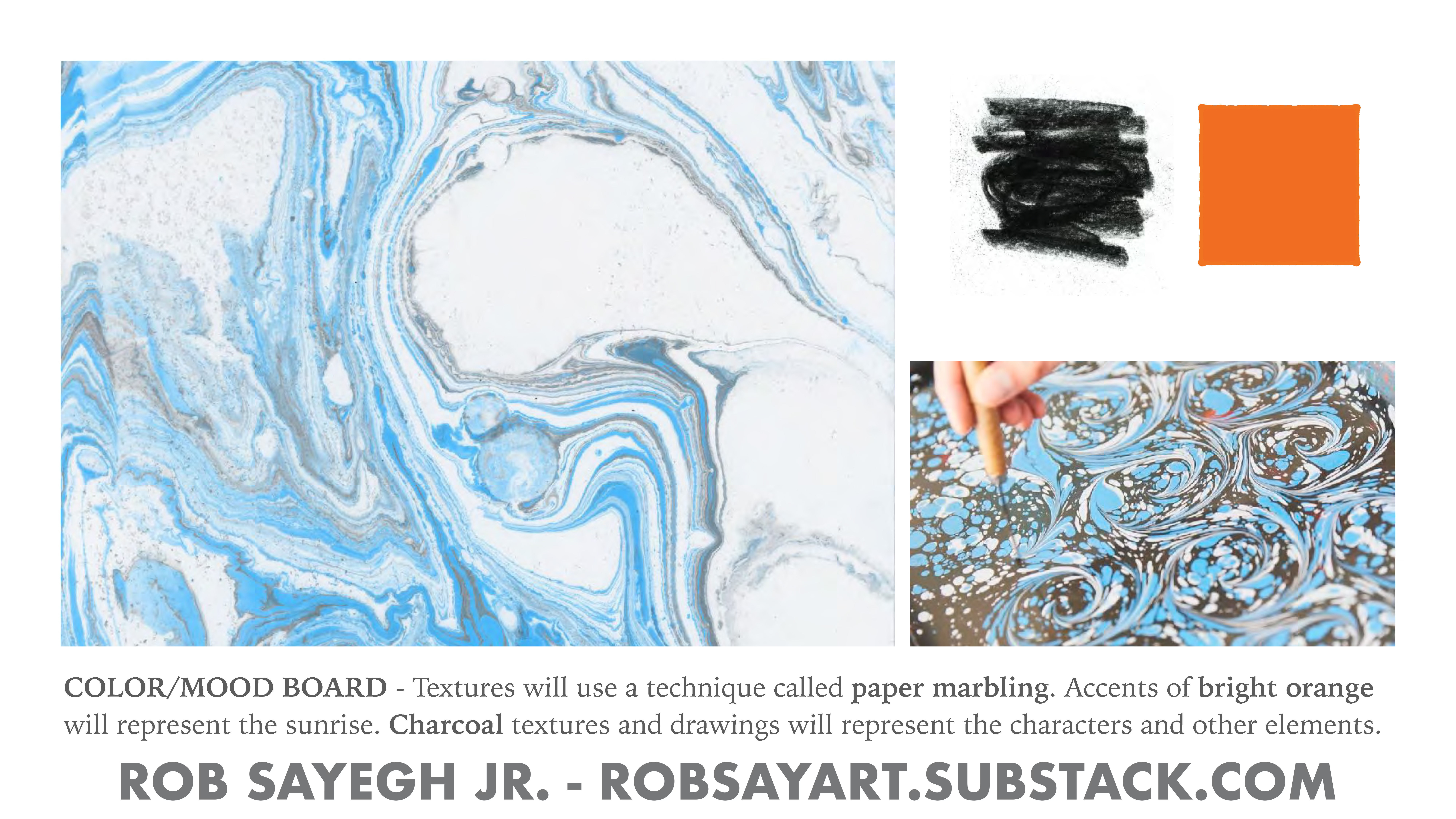 COLOR/MOOD BOARD - This page explains how I plan to illustrate the book and what colors, processes, and techniques I plan to use.