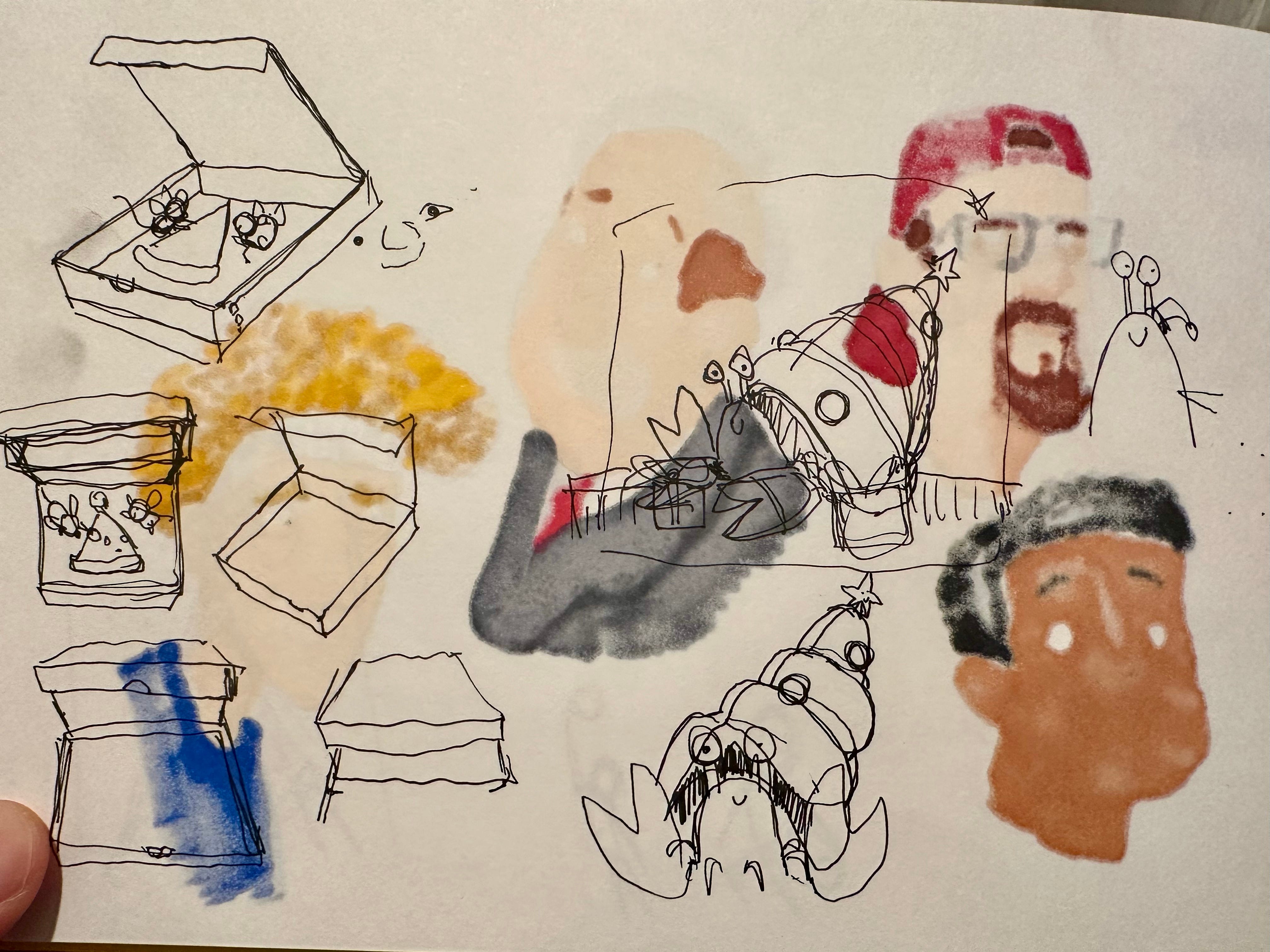 A rule that I use in my sketchbook is that the left page is for ideating, and the right page is for observational drawings and journalling my day-to-day life. This keeps things exciting for me but also balances out both sides of my craft, keeping me fresh and in practice. Here is where I come up with new ideas for book characters and stories or even something as simple as an Instagram post.