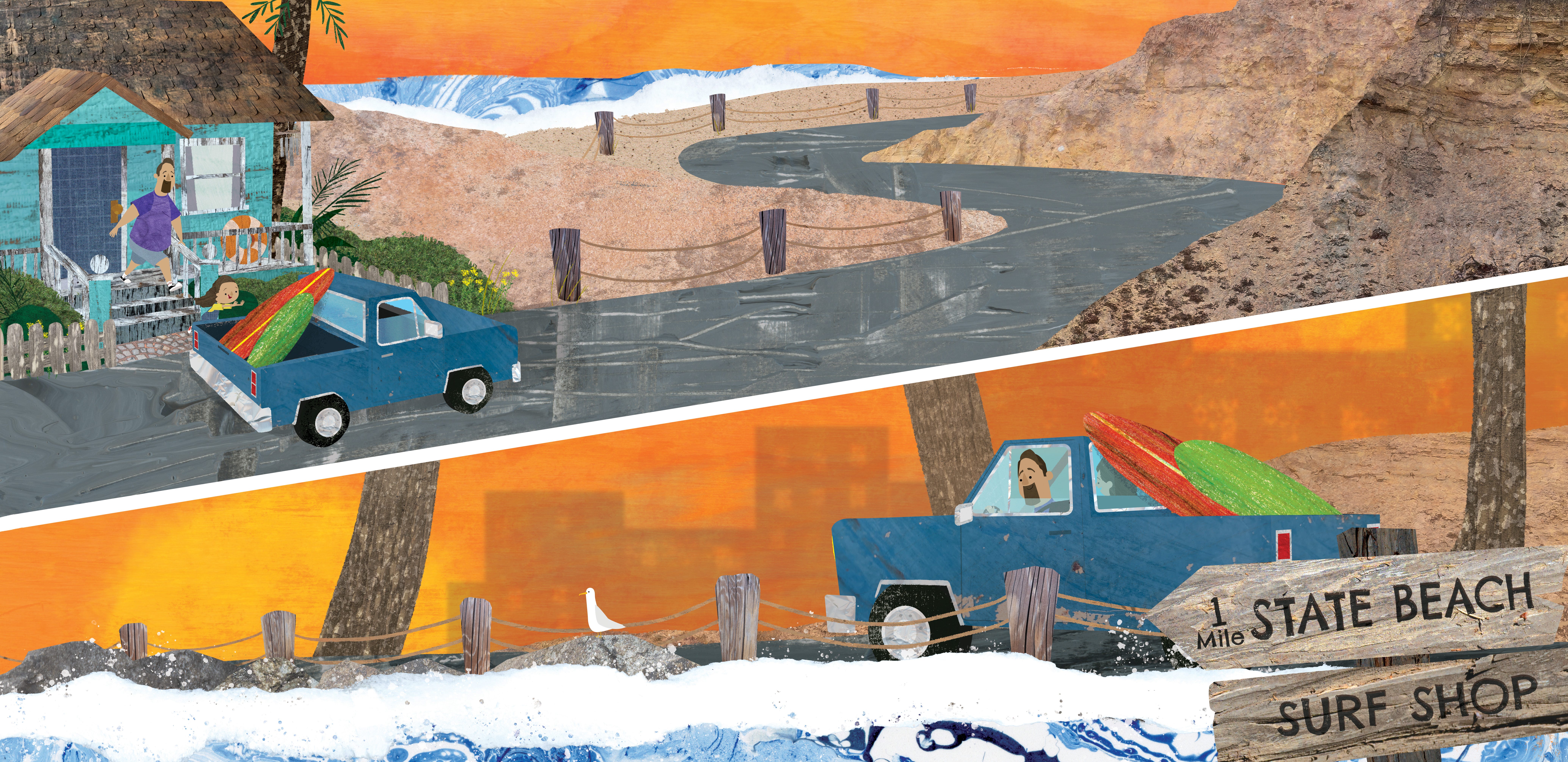 As an illustrator, most of my ideas are born out of illustrations rather than story ideas that I jot down. DAWN PATROL: A FATHER AND DAUGHTER SURFING STORY was no exception. But instead of the idea starting with a sketch, it actually started with a simple exploration of texture-making.