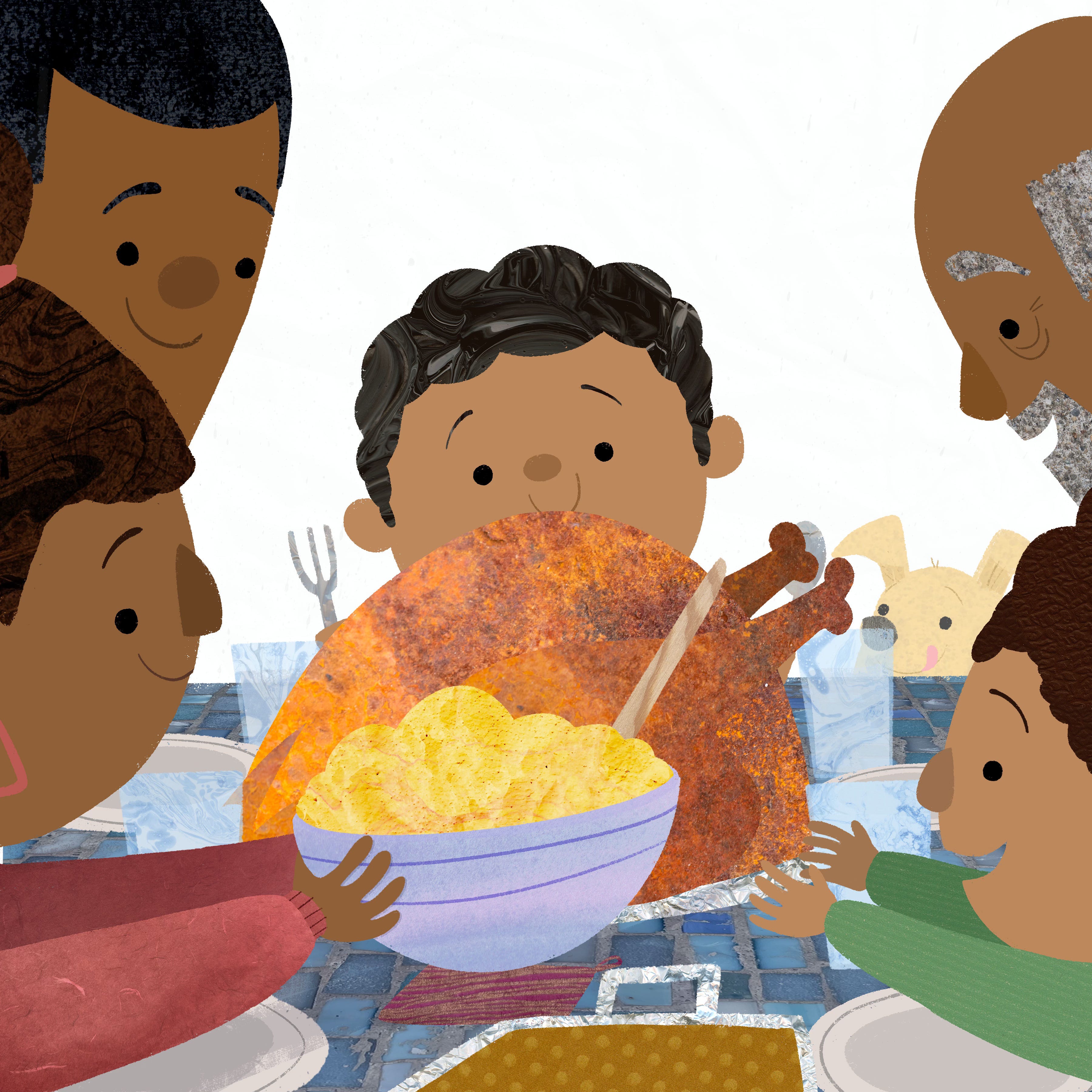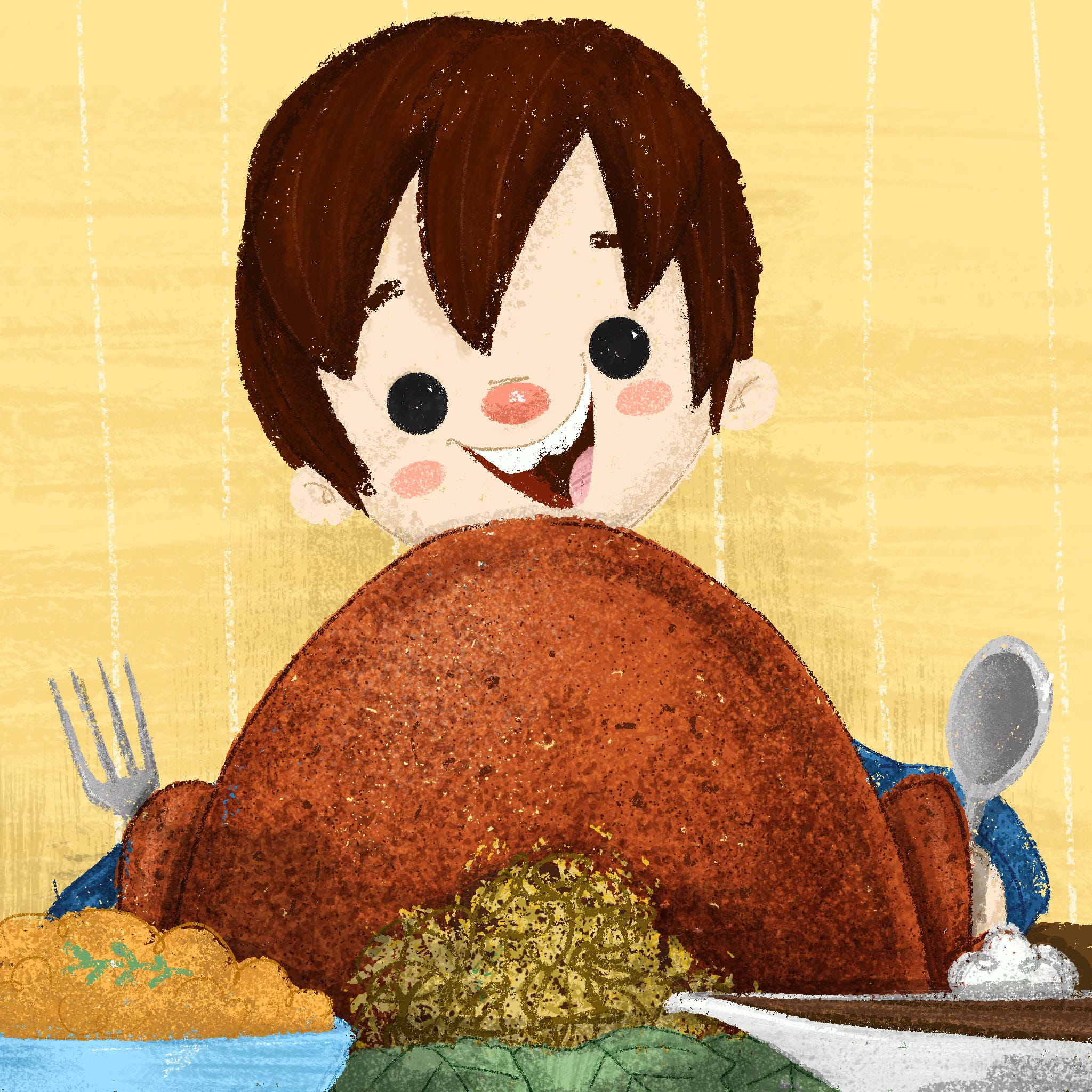 Revised piece in 2024.I also discovered while redrawing this piece that the things I cared about being in the piece changed. I wanted to add more family elements, more variation in the ages of the people in the work, and also celebrate the moment of a family sitting down for Thanksgiving dinner. This is where I didn’t expect to be so profoundly influenced and changed over 6 years. Before becoming a professional illustrator, I spent so much time hiding my personal story from my work and brand, thinking it would hurt me if people knew I was just moonlighting as an Illustrator and working a day job. I would constantly push it away, but now, as a full-time illustrator and in a completely different place in my life, my personal growth and story have helped me grow as an artist more than I could imagine. Being a dad and having a family changed not only my perspective but the themes and things I want to surround my art around, which makes my art today even more special than ever.