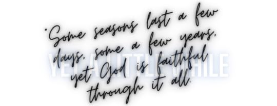 Friend, the season you are in right now will not last forever. Though the wicked have persisted, yet a little while and these moments will be no more. I can’t guarantee a time frame, for each season is different. But I am—scratch that—YOU are living proof that God is faithful and will not abandon you. I close with this reminder from Isaiah 43:19,