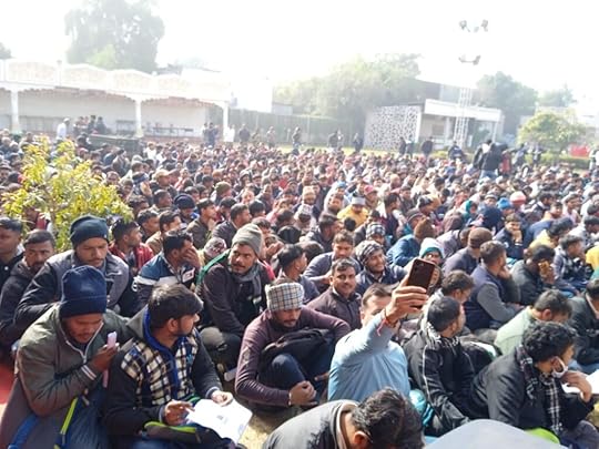 More than three thousand non-permanent (contract, trainee, apprentice, TW, CW, MST etc) workers who have worked and working in Maruti Suzuki plants in Gurgaon-Manesar congregate in Gurgaon to demand permanent jobs, equal pay, salary increase and other demands