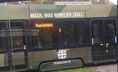 Let us know when a Bundeswehr tram is running through the streets in your area! Even better: join this campaign in your city!