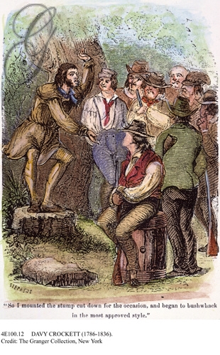 When a delegation from Mississippi asked his permission to nominate him for thepresidency in 1834, Crockett recognized that it was not a realistic option forhim, but responded anyway, saying “If I am elected, I shall just seize the old monster —Party —by the horns, and sling him right slap into the deepest place in the greatAtlantic sea.”