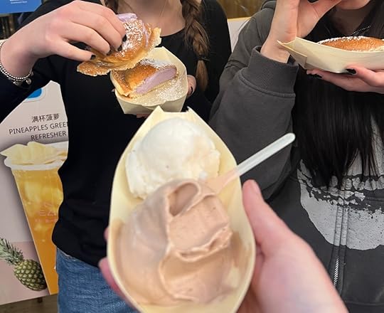 We stopped off for some Korean corn dogs on the way home as well as some bilog stuffed with ube icecream. Food I’d never eaten in my life until that moment. It was delicious.