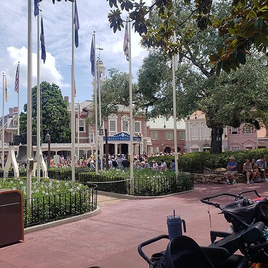 By this time we were VERY hot and sweaty, so we took a rest at the Hall of Presidents (a first for me, and I loved it!).