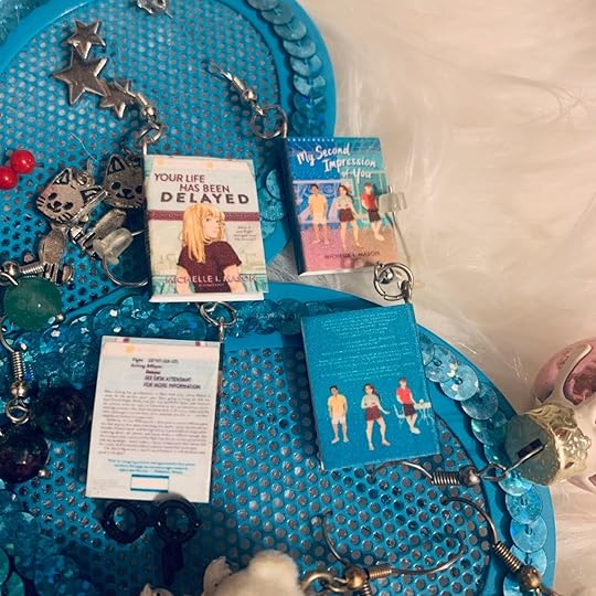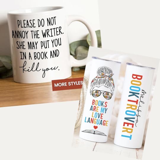 Book jewelry/swag. This is such a broad category and applies to both writers and readers. As an author, you will get me with anything that has my book covers on it. Pictured here are my custom book earrings. Every time I wear them, people comment–and ask about my books. I ordered these from EbbyEarrings on Etsy, but many shops offer them. MG/YA author Catherine Bakewell recommends InkandShrinkSwag for keychains, ornaments, and other items. But there’s so much more you can get–necklaces, bracelet charms, coasters, framed prints, cups, etc. Basically, if you could make something like it with your personal photos, you could also do it with a book cover.