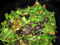 Add the Roma beans. Toss in more oil if it seems dry. Stir it around more. Toss and play and sniff and test because you know the rule: PLAY WITH YOUR FOOD!