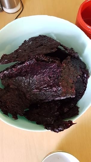 В нас був жмих. Якщо у вас є сушарка, то застеліть її пергаментом, викладіть отой жмих і висушіть. Буде отаке.