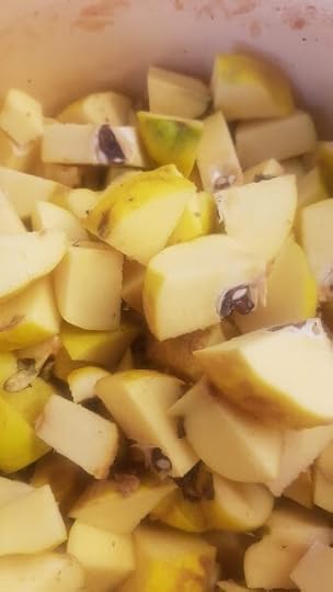 Взагалі, оця ферментація решток це хороша тема. Для сидру воно мені не надто насичене, а в стані вже оцту, коли вже перебродило до кінця, і зверху плавають сіруваті плівчасті колонії дріжджів, дуже гарне, особливо як розбавити мінералкою і охолодити.