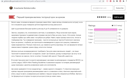 Брошура, про яку пані Анастасія не раз писала в інсті, з рештою чомусь опинилася на Gumroad, брендована GOLOBORODKO за гроші і без згадок про UNICEF. А від UNICEF жодні брошури про прикорм не гугляться. От біда!