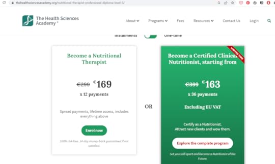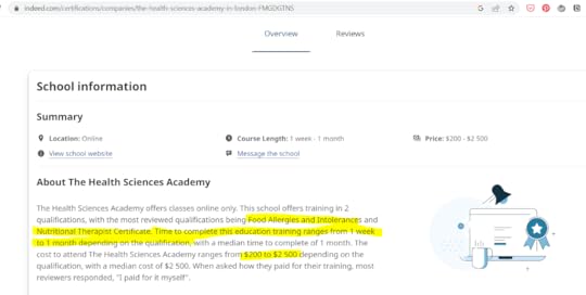 Другий — Health Science Academy — з’явився за минулий рік. Мабуть, завершила навчання. Аби стати сертифікованим клінічним нутріціологом, треба провчитися 60 годин. Шістдесят. Годин.