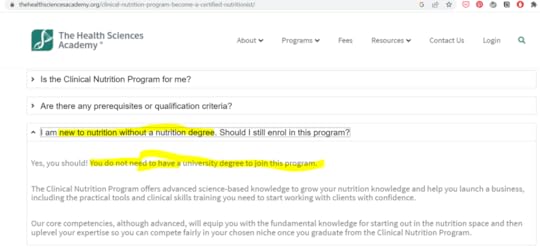 А це пишуть вони самі. “Можна не мати університетського ступеня і не знати нічого про нутріціологію, аби отримати сертифікацію”.