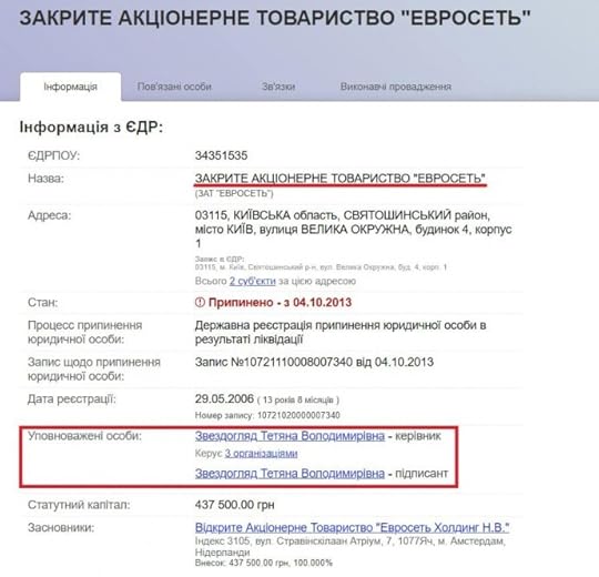 Тетяна Звездогляд — кінцевий бенефіціар Діагену, людина, на яку записаний власний контрольного пакету Діагену, дотична і до Євросеті