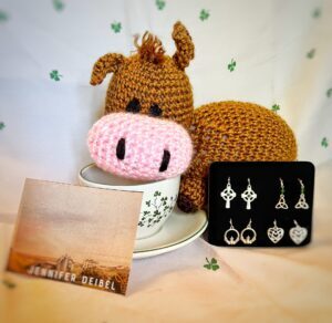 I’m offering a special giveaway to anyone who stops by my post! You can win a signed bookplate for The Irish Matchmaker, a set of Irish-themed earrings, and a handmade version of Pete the Cow from the story!