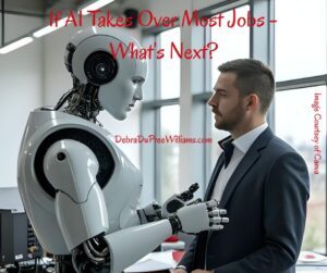 A recent conversation between my husband, one of our four sons, and I brought up the topic of AI taking over so many jobs. The son mentioned recently lost his very good job in the IT sector to AI. He loved that job, and he’s having a hard time finding work. Where do we go from here? What’s next?