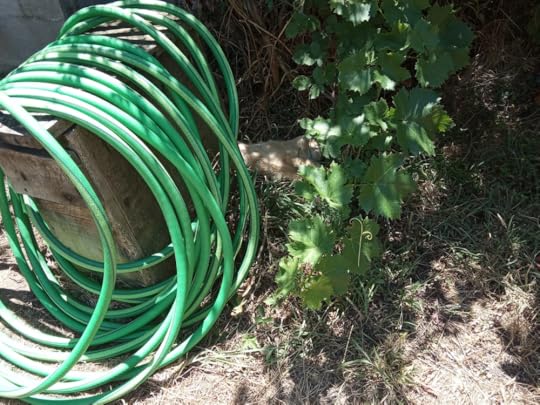 The best time for watering is early morning or late evening, before the sun hits the plants, turning any water droplet into a magnifying glass to scorch the fruit or leaves. As our little valley runs east to west, the sun flows along it, meaning an early start (for me).