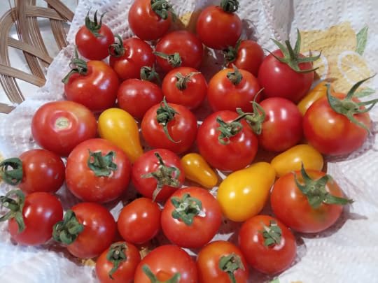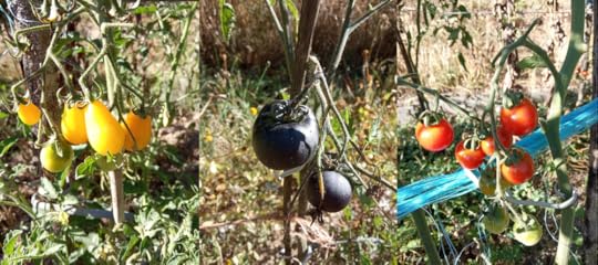 This year we have a plethora of deliciously sweet, yellow pear tomatoes. I also sowed the seeds from a ‘black’ tomato I bought in spring from our local supermarket. The plants have dark green leaves and the fruits are midnight black. I’m looking forward to trying those ones. My favourite tomatoes though are still the tiny cherry ones. Perfect for popping in the mouth straight from the bush. Yum!