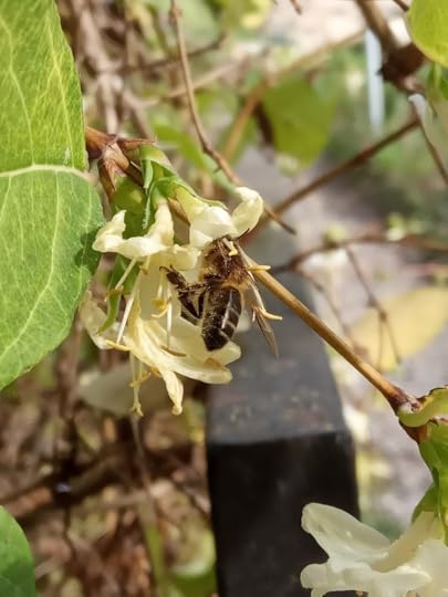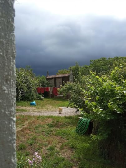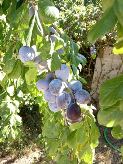 Those same fruit trees are full of ripening plums and greengages. If the blackbirds don’t peck them all, we will have a good crop. Already there are enough for breakfast, the sweet-sour tang delicious with my yoghurt and honey.