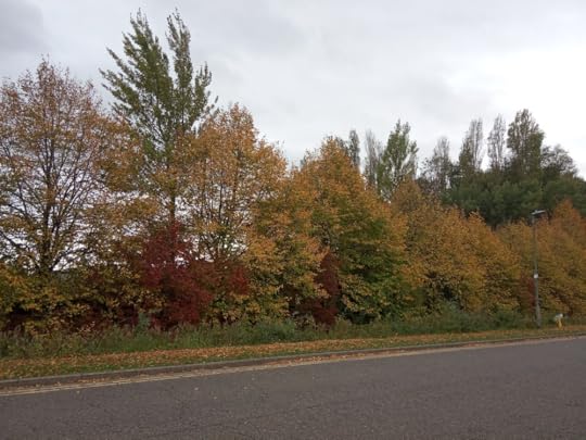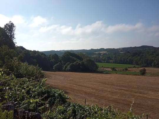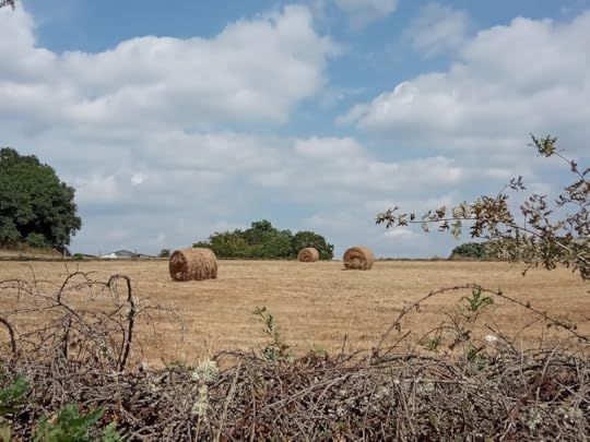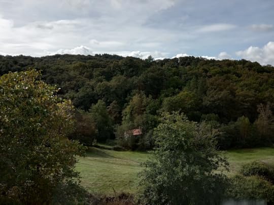 In August the trees are a wall of deep green, the field brown and bare, but by October, the trees are beginning to show their autumn colours, washed clean by the rains, the field once more green and vibrant.