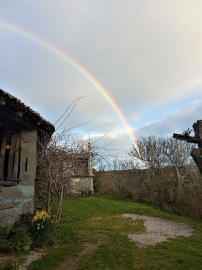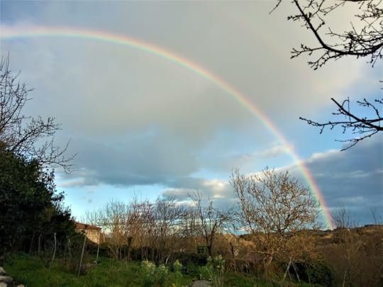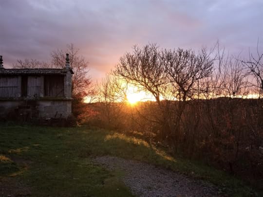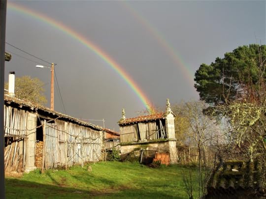 Another of my favourite photographic subjects is the view looking from our kitchen terrace towards the stone and wood built hórreo or grain store. Facing directly east from the house, this is the perfect spot to collect sunrises and rainbows,