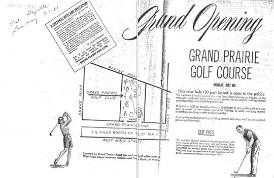 Grand Prairie Golf Course Grand Opening Announcement. 1963While the working title for the course as it was being designed was Hammond Golf Center, it was officially changed to Grand Prairie Golf Club before its grand opening on July 8, 1963. (The name consistently jumps back and forth between that and Grand Prairie Golf Course throughout many articles written at that time.) In a personal note added to the grand opening announcement, Hammond explains in a PS, “If you sense the atmosphere of a private country club, that’s intended and explains the name, GRAND PRAIRIE GOLF CLUB.” The fee for a round of golf on that opening day was one dollar. Today, a round of golf is eleven dollars for an adult, which is still a deal.