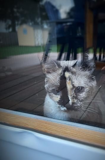 Scrolling down, I scanned the current lineup of inhabitants at the café, finally landing on a peculiar little one named Shiraz. Cute enough photo, capturing her staring at the photographer while perched atop a Keurig Coffee Maker. Reading the description, I discovered she was found wandering the streets. She had some medical issues that were dealt with at the vet, and now appeared to be healthy and looking for her forever home. I continued staring at her, knowing we were meant to be. I just needed to get past the phrase that came up more than once in her bio… “She can be sassy.” For those unfamiliar with cat-speak, that’s code for “Mean.”